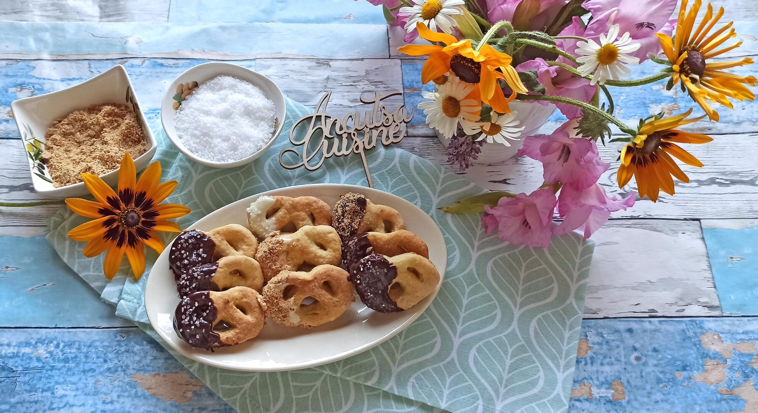 Am pregătit covrigei cu aluat de casă, iar la final i-am glazurat pe unii dintre ei cu ciocolată neagră, pe alții cu ciocolată albă, apoi i-am decorat cu sare de mare, respectiv arahide sărate. Au fost atât de buni că a trebuit să decorez doar câțiva, să-i pozez repede și să-i trimit la degustat, ca apoi să decorez și restul covrigeilor. Am lăsat și câțiva covrigei simpli, pentru tata.