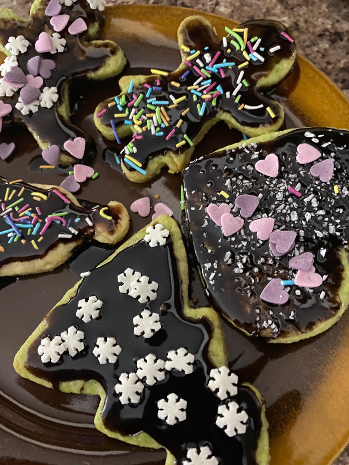 Dupa ce se lasa la frigider, luam compozitia si o intindem pe o suprafata cu sucitorul, apoi incepem sa “decupam” forme.