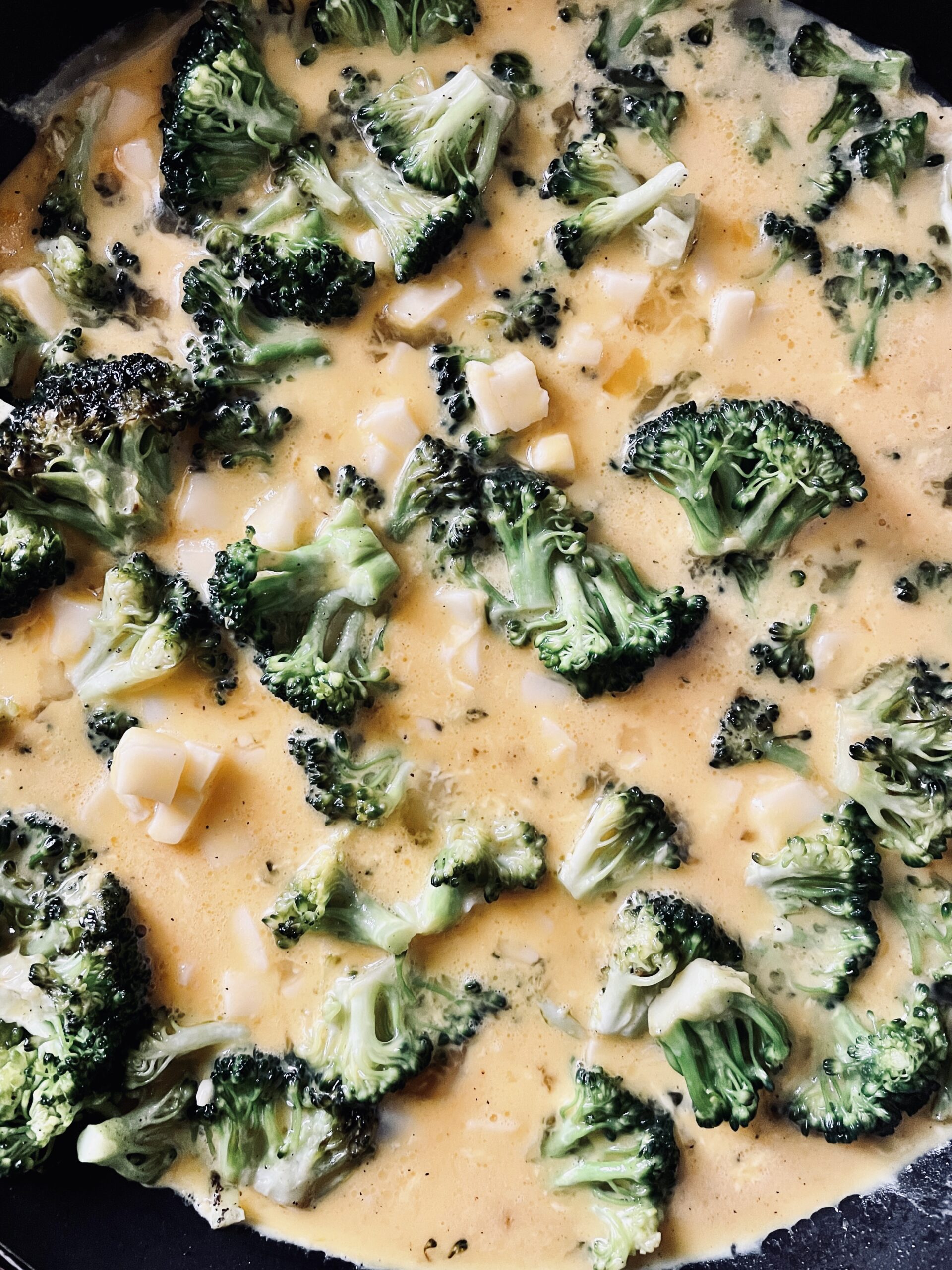 Intre timp, intr-un bol, amestecam ouale cu sarea si piperul, dupa care le turnam peste brocoli si lasam la foc mic pentru 10-15 minute cu capacul pus.