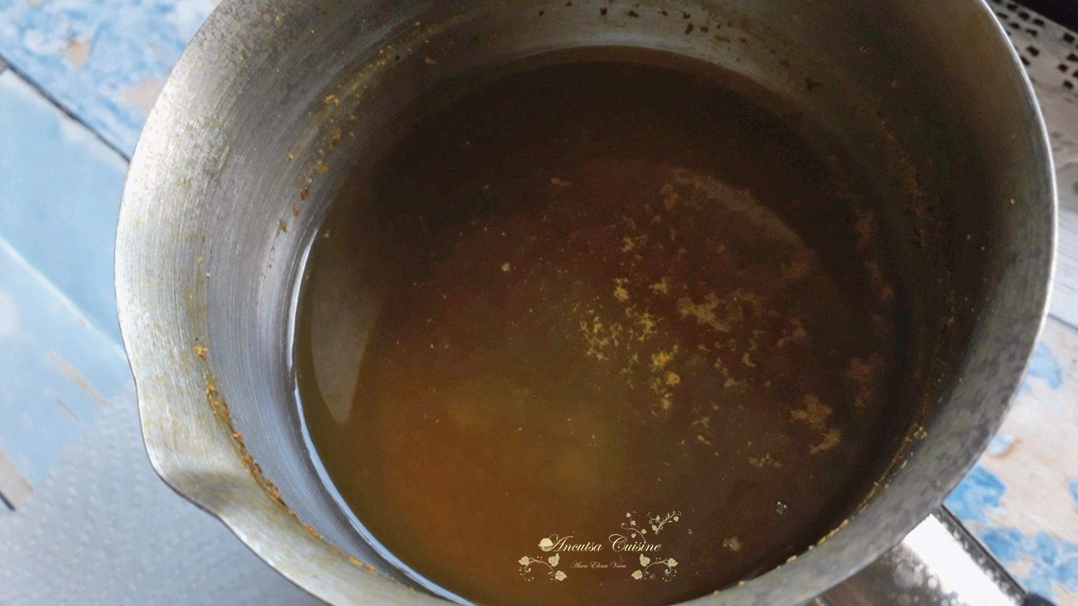 Fierbi aprox 2 minute apa cu coajă de portocală aromată cu whisky și vanilie, coajă de mandarină. Lași la răcit, apoi adaugi brandy.